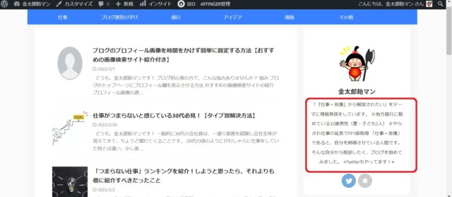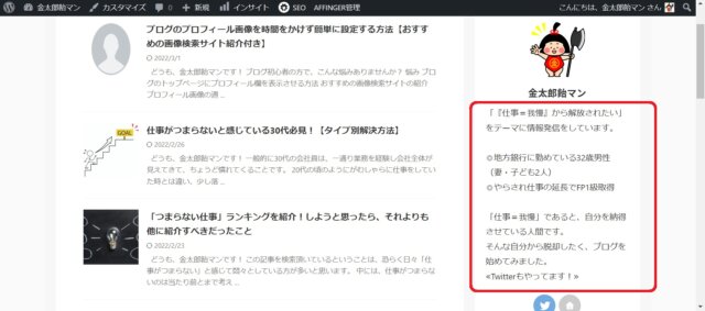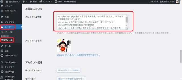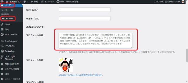 WordPressの「ユーザー設定」からプロフィールを作成しているけど、